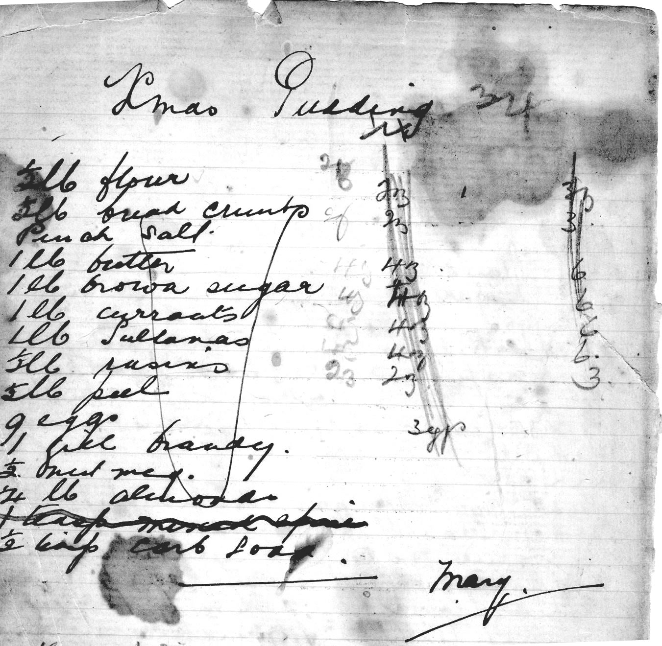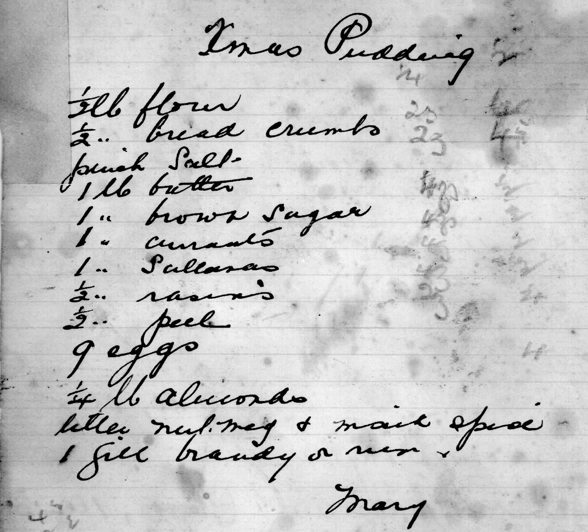 Then the recipe was copied out by hand and often the source acknowledged. Note the Xmas Pudding recipe is particularly grubby -possibly due to the family tradition of extra brandy being added by helpful family members as they passed by the pudding bowl where the pudding was tied in a cloth.